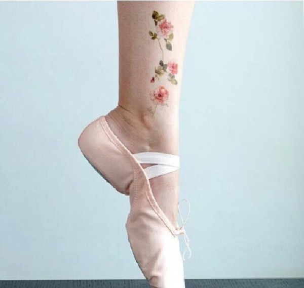 女生脚踝上的小清新花朵纹身图片
