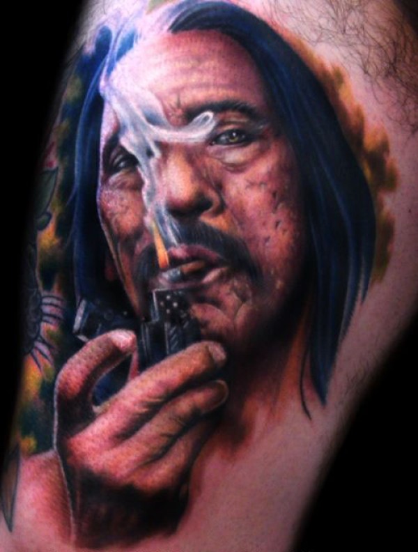 正在点烟的大叔肖像纹身图案