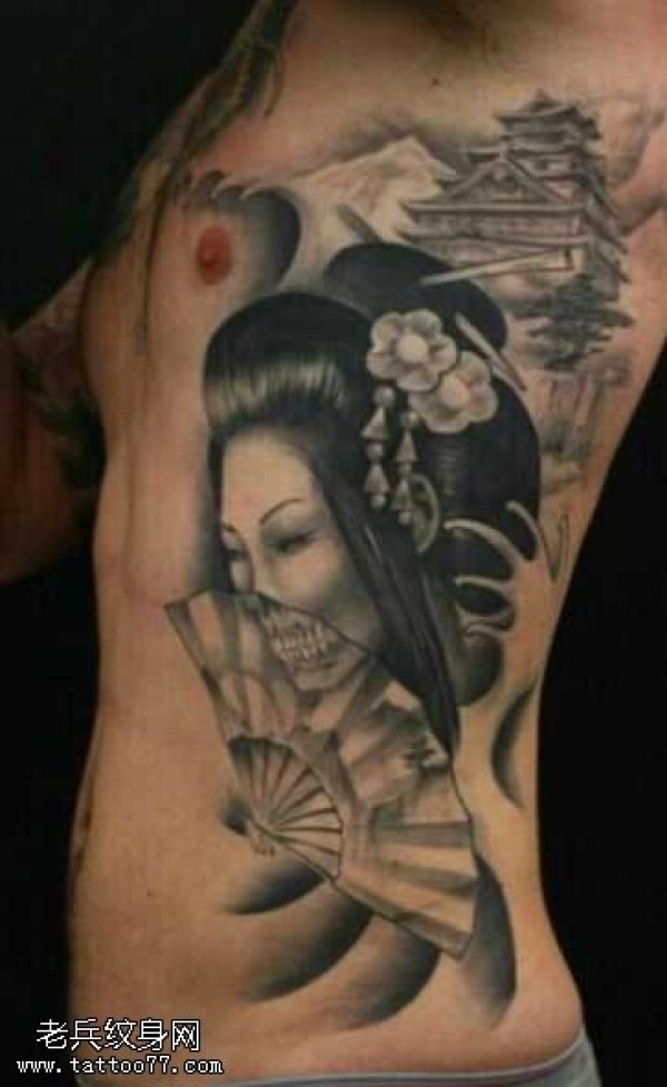 腰部艺妓纹身图案