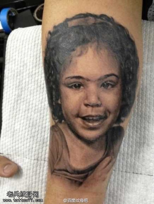 手臂小黑妞人物纹身图案
