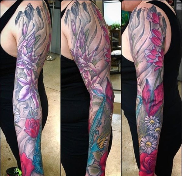 手臂莲花蛇纹身图案_臂部纹身图案大全_纹身图吧