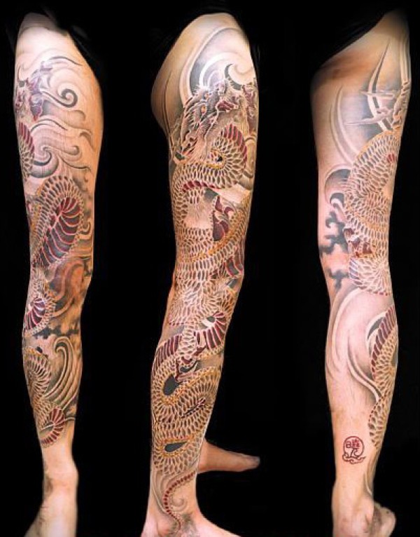 火红色的龙纹身