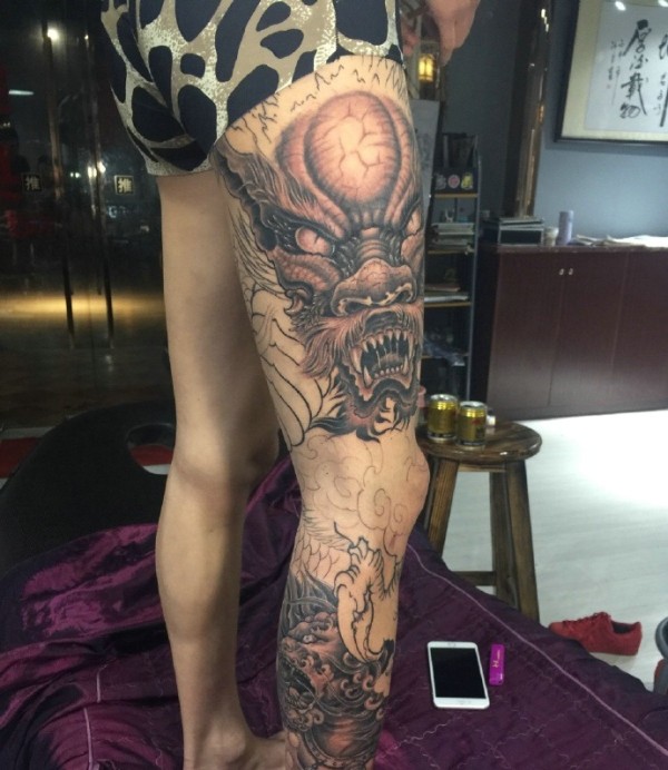 花腿纹身--一组大黑腿纹身图案作品欣赏