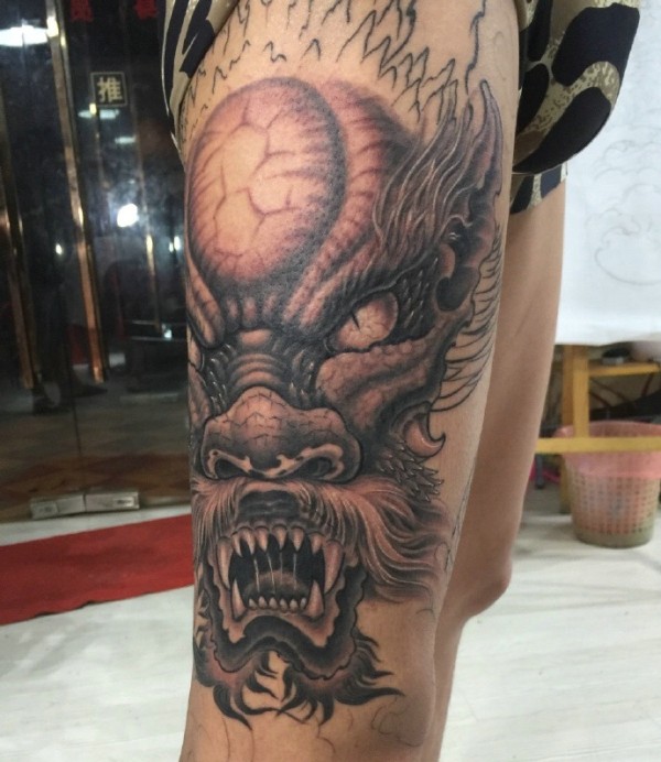 经典盘腿黑灰邪龙纹身图案帅爆了
