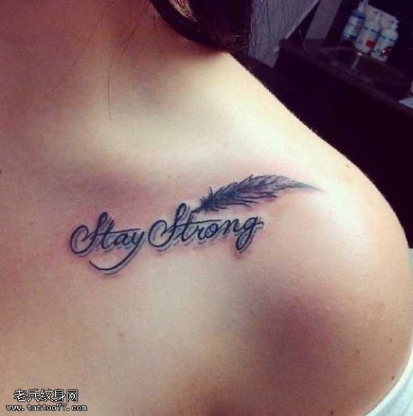 胸部羽毛英文纹身图案