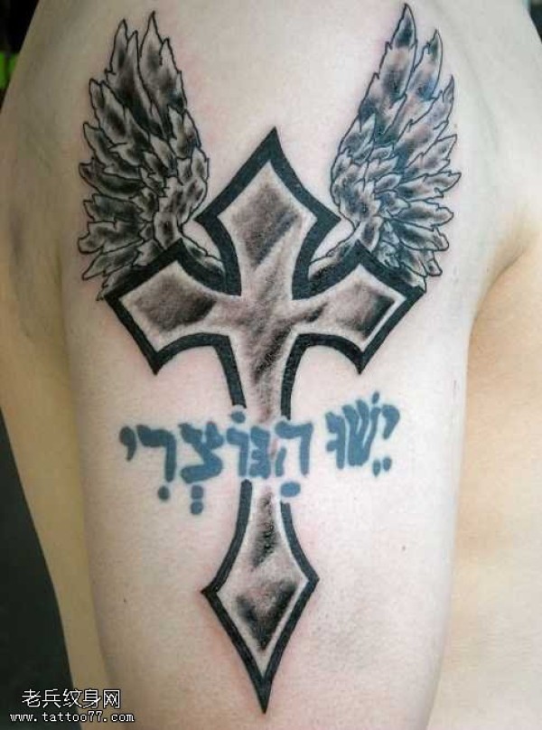 十字架翅膀纹身图案