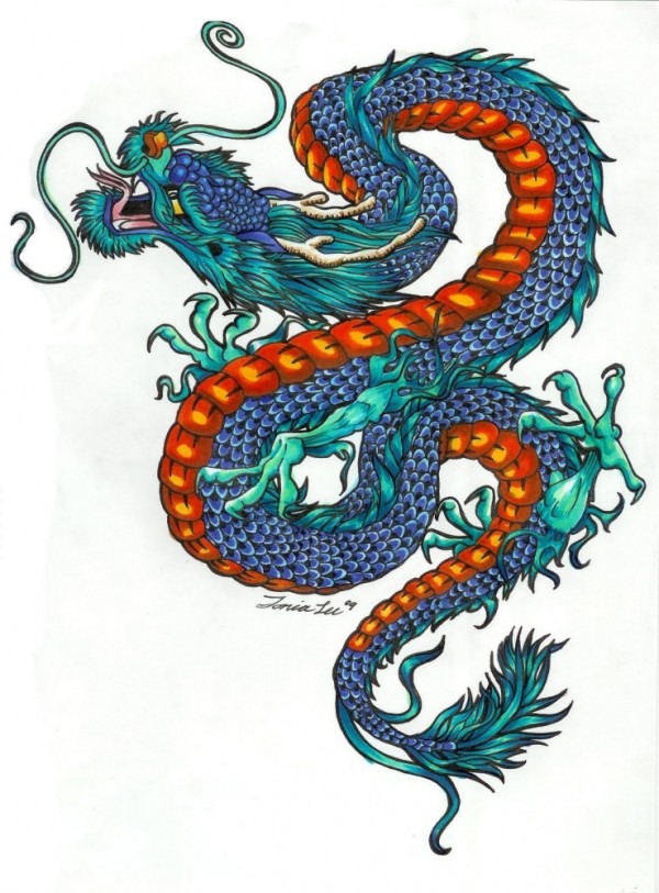 龙纹身手稿_一组老传统黑灰龙手稿纹身图案