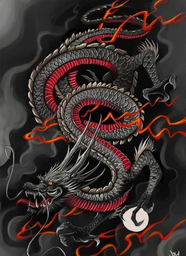 龙纹身手稿_一组老传统黑灰龙手稿纹身图案