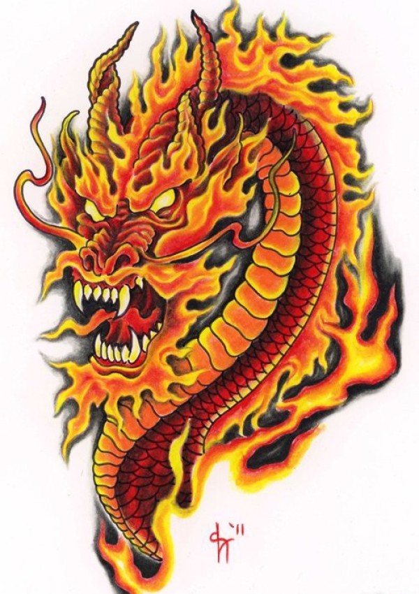 龙纹身手稿_一组老传统黑灰龙手稿纹身图案
