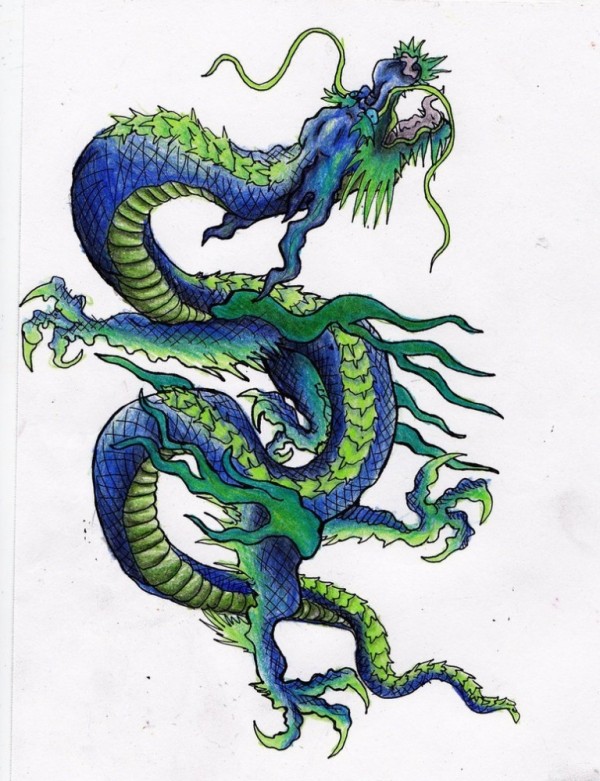23款漂亮霸气的彩色龙纹身图案手稿