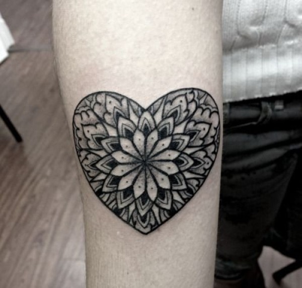 变形字体形成的心形图案纹身