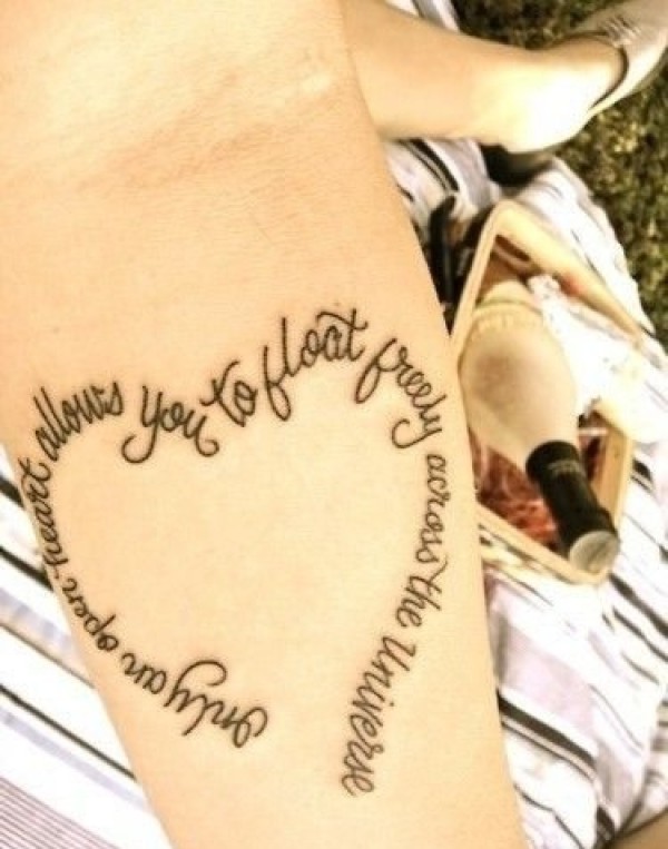 变形字体形成的心形图案纹身