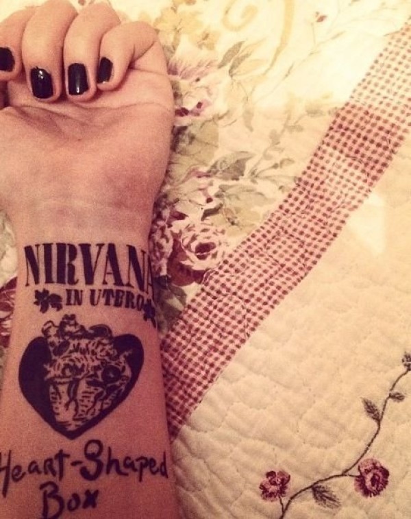 变形字体形成的心形图案纹身