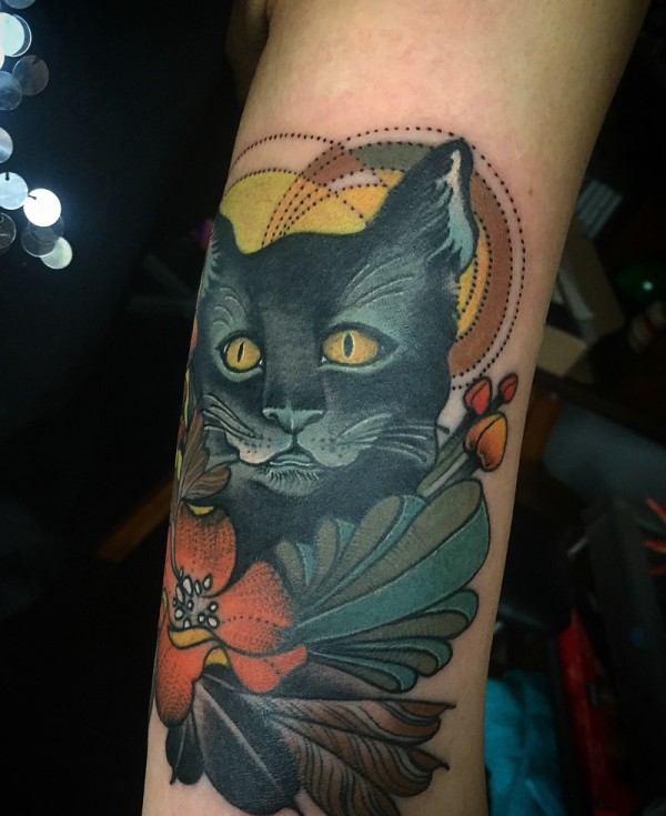 夜间下的小夜猫手臂纹身图案