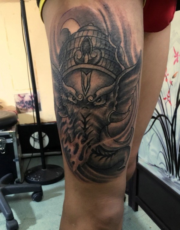 小腿上一款大象纹身图案_腿部纹身图案大全_纹身图吧