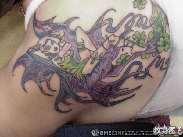 穿绿色比基尼的紫色魔女纹身