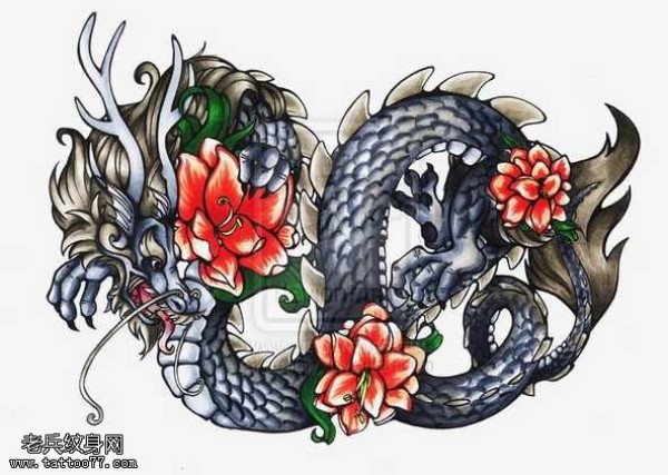龙纹身手稿_一组老传统黑灰龙手稿纹身图案