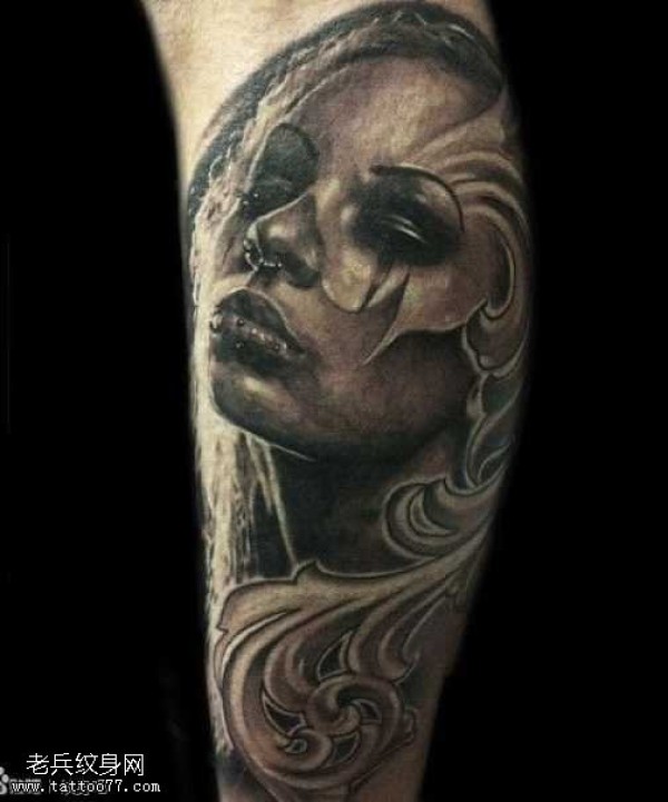 胳膊黑灰女性物纹身图案