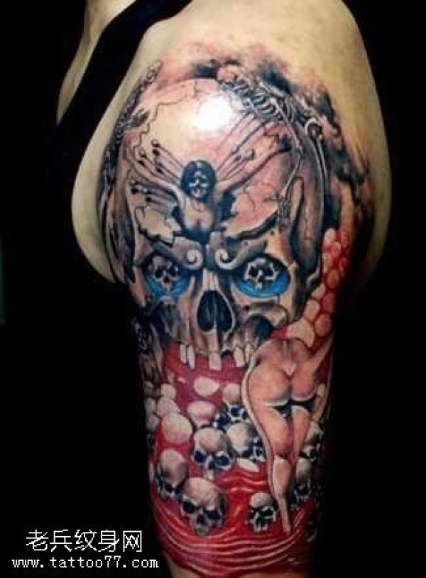 个性手臂悲伤的骷髅纹身图案图案图片_骷髅纹身图案大全_纹身图吧