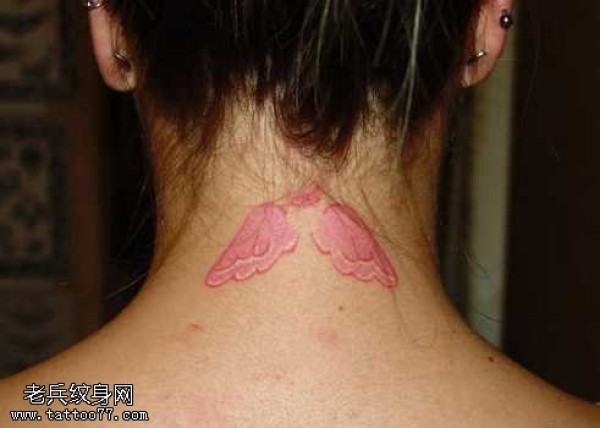 脖部粉翅膀纹身图案