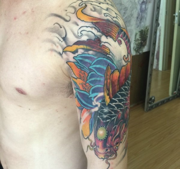 手臂鲤鱼纹身图案事业蒸蒸日上