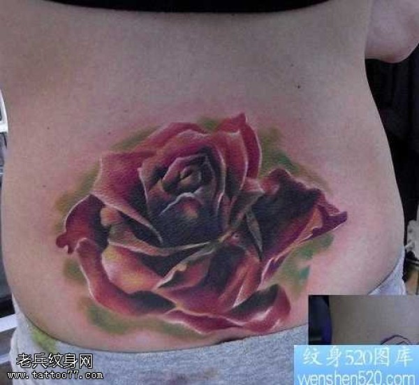 腰部潮流欧美彩色玫瑰花纹身图案