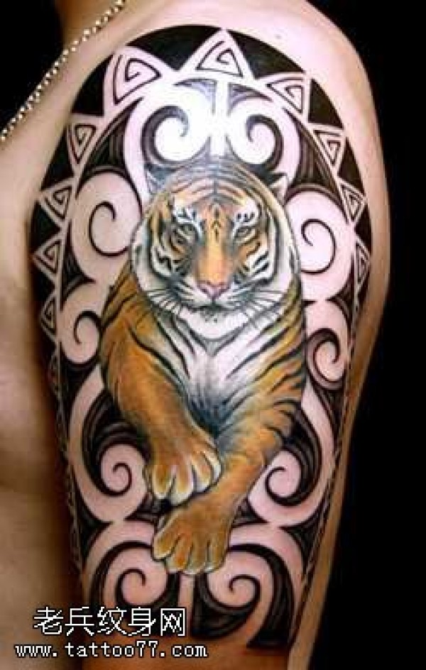 霸气半胛老虎纹身_动物纹身图案大全_纹身图吧