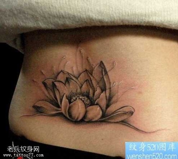 女性腰部莲花花纹刺青_腰部纹身图案大全_纹身图吧