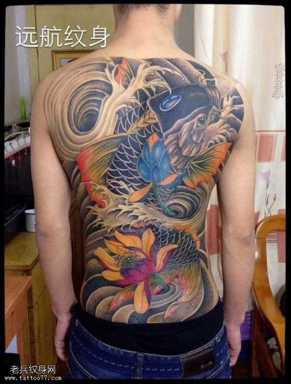 满背黑鲤鱼纹身图案