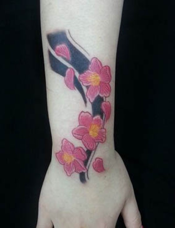 手部个性盛开莲花纹身图片_植物纹身图案大全_纹身图吧