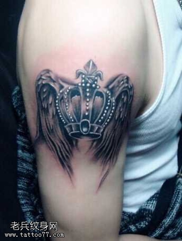 胳膊个性翅膀皇冠纹身图案