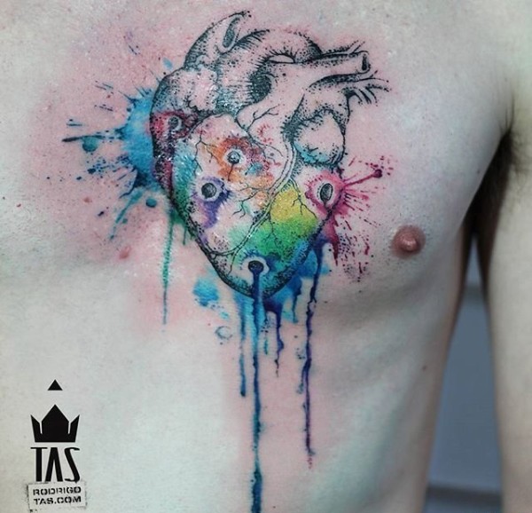 大臂上的蓝色水彩鲸鱼的纹身图案