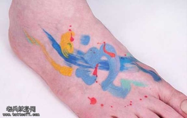 脚部水墨彩色纹身图案