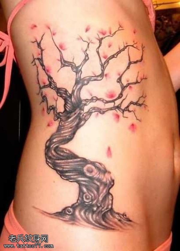 女性腰部莲花花纹刺青_腰部纹身图案大全_纹身图吧