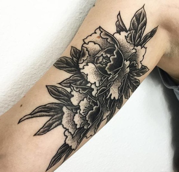 欧美玫瑰纹身 男生手臂上花朵纹身图片