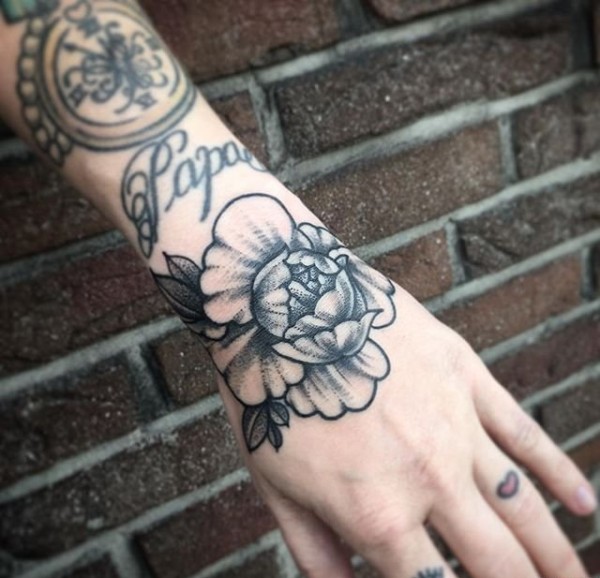 手部个性盛开莲花纹身图片_植物纹身图案大全_纹身图吧