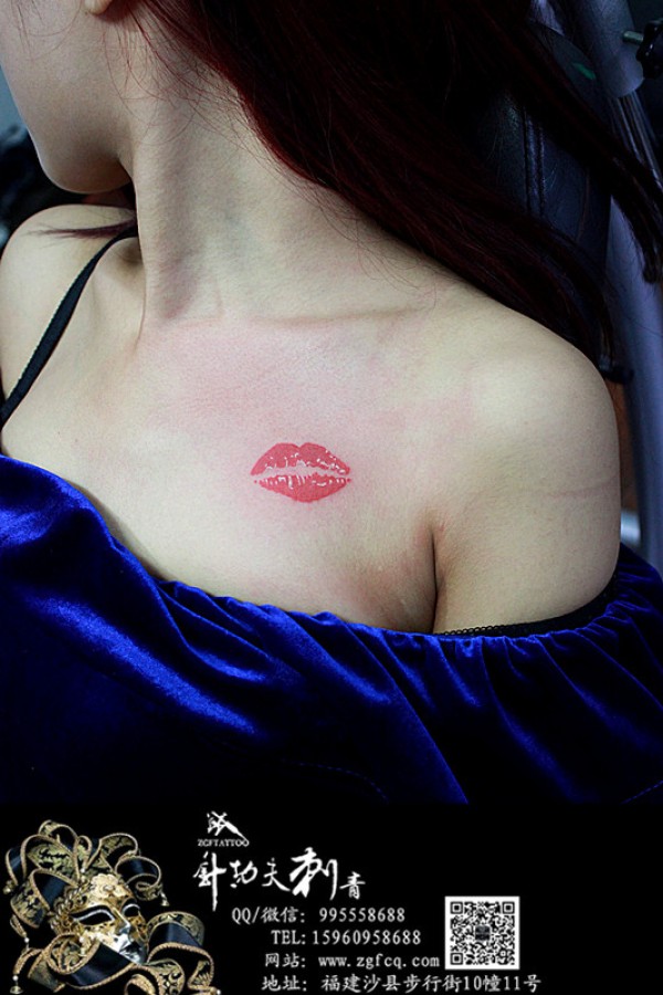 唇印纹身-胸部纹身-福建针功夫刺青胡宇作品