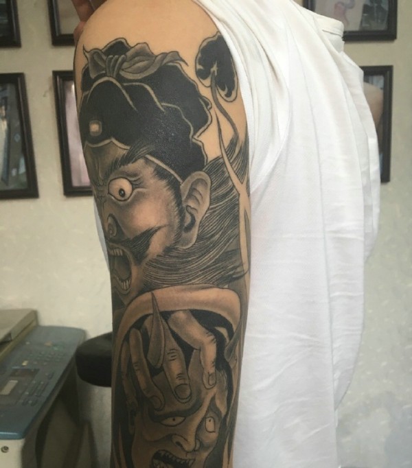 包臂经典传统的黑灰钟馗纹身图案
