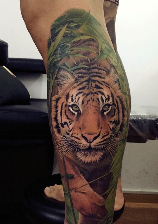 花腿纹身--一组大黑腿纹身图案作品欣赏