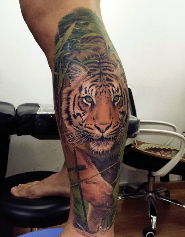 花腿纹身--一组大黑腿纹身图案作品欣赏