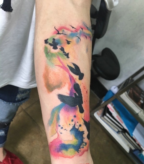 七色彩手臂惊艳动人的水彩纹身图片