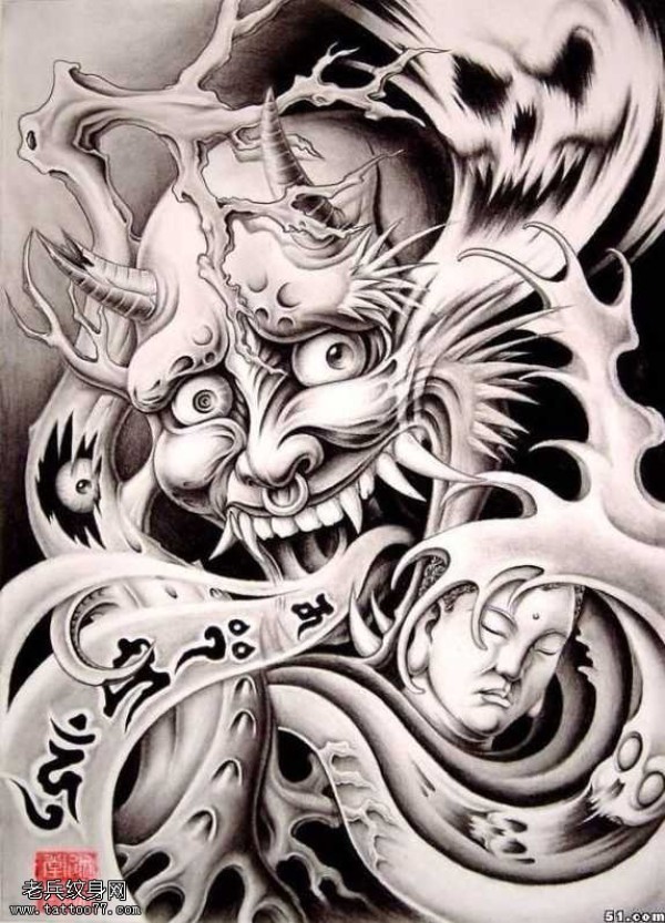 能面万媚纹身手稿_52张日式能剧面具纹身手稿图案素材欣赏