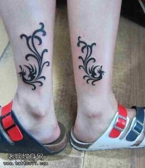 腿部凤凰图腾纹身图案