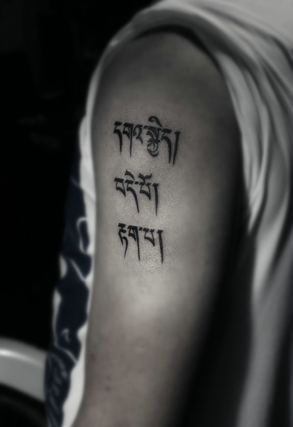 大臂外侧简胆单一的梵文纹身刺青