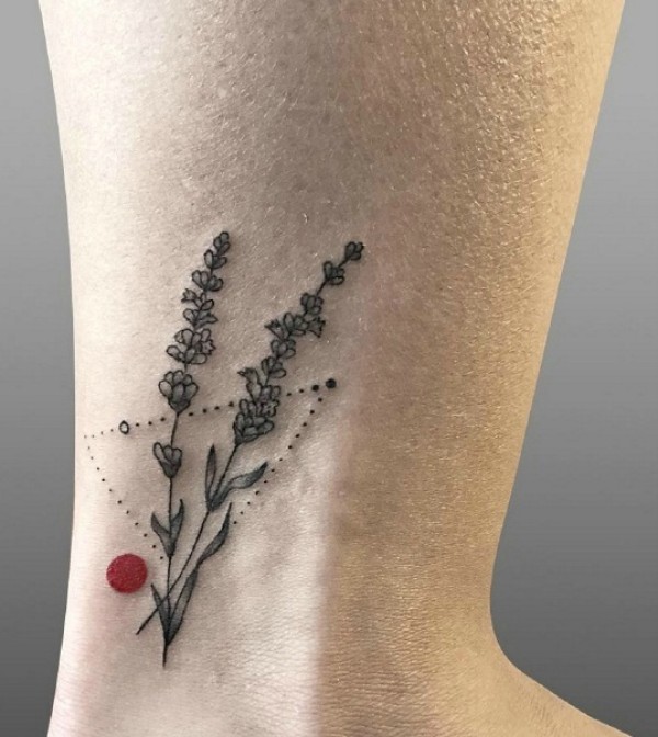 一套简单的黑灰中加上一个小红点纹身图案