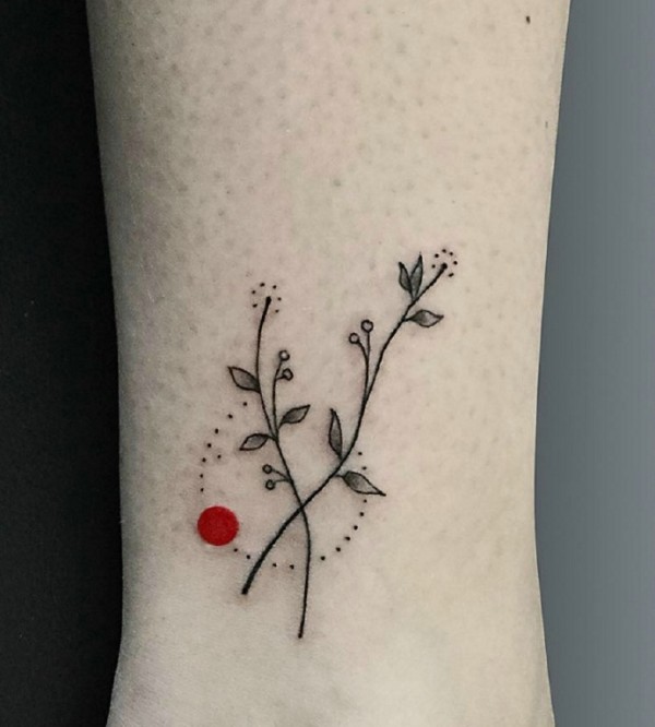 一套简单的黑灰中加上一个小红点纹身图案