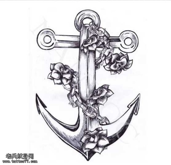 手稿唯美船锚纹身图案