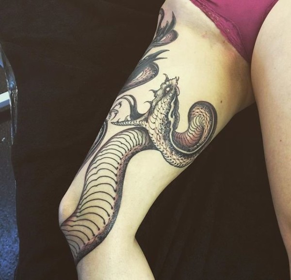 缠绕着骨架骷髅头的怪物蛇图案纹身