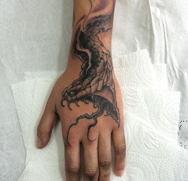 缠绕着骨架骷髅头的怪物蛇图案纹身