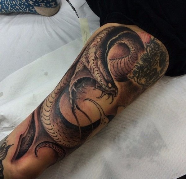 缠绕着骨架骷髅头的怪物蛇图案纹身